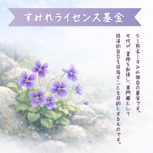 SI熊本―すみれ独自の基金です。女性が、資格を取得し、専門職として経済的自立を目指すことを目的とするものです。
