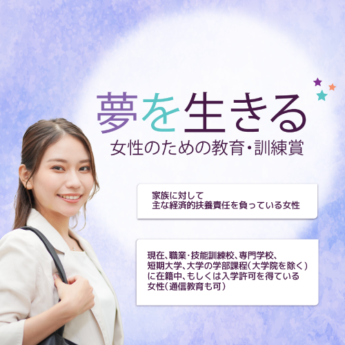 経済的理由で進学の機会が閉ざされる高校3年生女子に、未来の可能性と夢の実現を応援します。